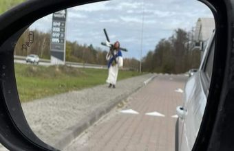"Відвідав нас у Києві Джиммі, який родом з Вірджинії, США, і якому 33 роки. Виглядає як Ісус, але твердить, що він далеко не Ісус, і не святий, просто взяв дослівно хрест, і за 70 днів пройшов пішки з Варшави до Києва. Хрест, до речі, порадив йому взяти якийсь українець в одному варшавському кафе, і спорудив цей хрест для нього.
