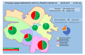 «Станом сьогодні на ранок у місті з 1237 майданчиків житлового фонду перенакопиченими є 406 майданчиків, що становить 33%. У розрізі районів: Шевченківський – 111 не вивезених майданчиків, Залізничний – 41, Личаківський – два, Франківський – 78, Сихівський – 174. Очищені всі майданчики у Галицькому районі.