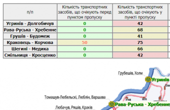 75 водіїв очікували у вівторок вранці в пункті пропуску в Краковці, 68 – у Рава-Руській, а 66 – у Шегинях.