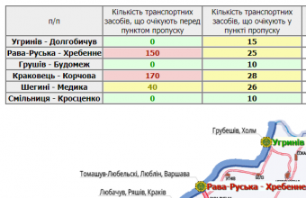 170 водіїв очікують у пункті пропуску в Краковці, а 150 – у Рава-Руській.