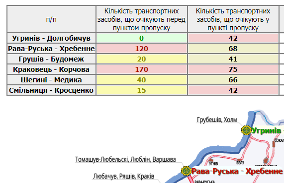 170 водіїв очікують перед пунктом пропуску в Краковці, ще 120 – у Рава-Руській.