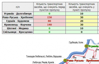 150 водіїв очікують перед пунктом пропуску в Рава-Руській, 140 – у Краковці, 80 – у Грушеві.