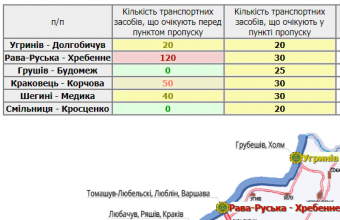 155 транспортних засобів очікують у пунктах пропуску на Львівщині, а ще 230 – перед ними.