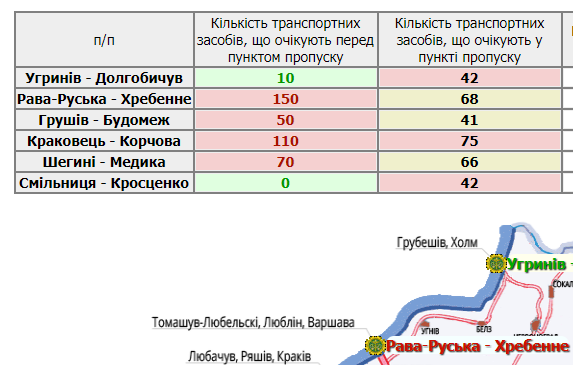 150 водіїів очікують перед пунктами пропуску в Рава-Руській, 110 – у Краковці, а 70 – у Шегинях.