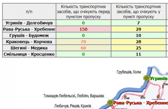 110 транспортних засобів очікують у пунктах пропуску на Львівщині, а 280 – перед ними.