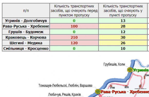 210 водіїв очікують перед пунктом пропуску в Краківці, 120 – у Шегинях, а сто – у Рава-Руській.