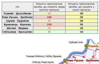 160 водіїв очікують у пунктах пропуску на Львівщині.