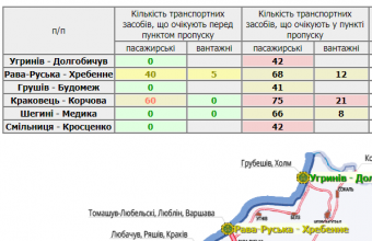 375 транспортних засобів очікують у пунктах пропуску на Львівщині, а 105 – перед ними.