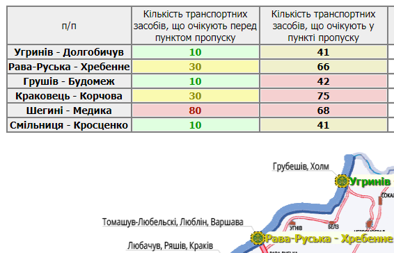333 транспортні засоби очікують у пунктах пропуску на Львівщині, а ще 170 скупчилися перед ними.