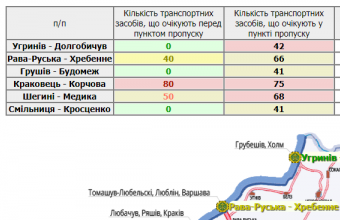 335 транспортних засобів очікують у пунктах пропуску на Львівщині, а 170 – перед ними.