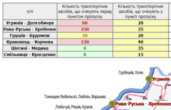 165 транспортних засобів очікують у пунктах пропуску на Львівщині, а 340 – перед ними, зокрема, 150 – у Рава-Руській.