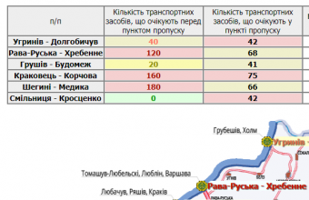 180 транспортних засобів очікують перед пунктом пропуску в Шегинях, 160 – у Краковці, а 120 – у Рава-Руській.