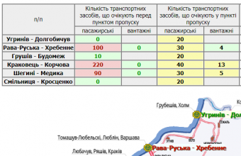 182 транспортні засоби очікують у пунктах пропуску на Львівщині, а 410 – перед ними. Зокрема, 220 – у Краківці.
