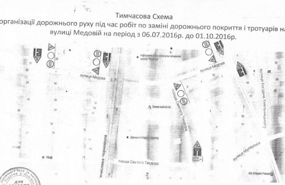 «Рух транспорту вулицею Медовою буде перекритий відзавтра, 6 липня, з 9.00 до 21-ї години 1 жовтня у зв’язку з проведенням капітального ремонту. Тут замінюватимуть дорожнє покриття та тротуари. Об’їзд буде здійснюватися згідно з тимчасовою схемою організації дорожнього руху (у вкладеннях). На місці проведення дорожніх робіт встановлять відповідні знаки, інформаційні панно та щити загородження», – повідомили сьогодні, 5 липня, в прес-службі міськради.