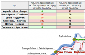 334 транспортні засоби очікують у пунктах пропуску на Львівщині, а ще 280 – перед ними.
