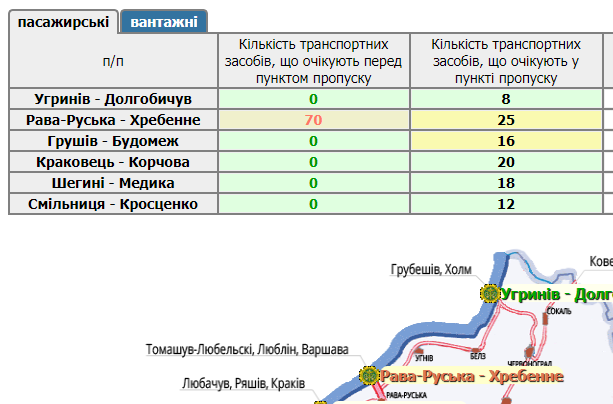 Ще 70 автомобілів скупчилися перед прикордонним пунктом пропуску «Рава-Руська»