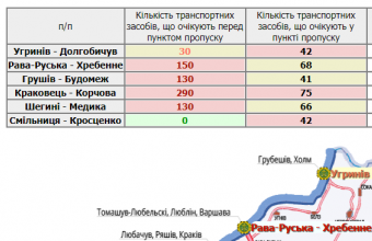 290 водіїв очікують перед пунктом пропуску в Краковці, 150 – в Рава-Руській, по 130 – в Грушеві й Шегинях.