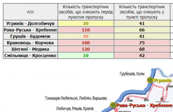 333 транспортні засоби очікують у пунктах пропуску на Львівщині, а ще 440 – перед ними.