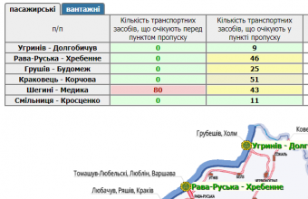 У прикордонних автомобільних пунктах пропуску на Львівщині стоять у чергах 176 транспортних засобів.