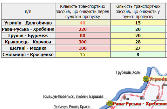 300 водіїв очікують перед пунктом пропуску в Краковці, 220 – у Рава-Руській, а 180 – у Шегинях.