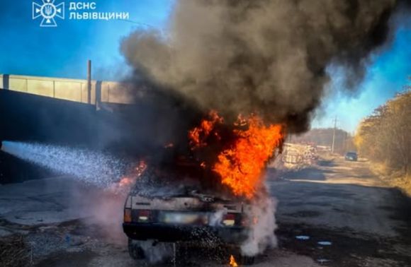 На момент прибуття вогнеборців на місце виклику автомобіль був повністю охоплений вогнем.