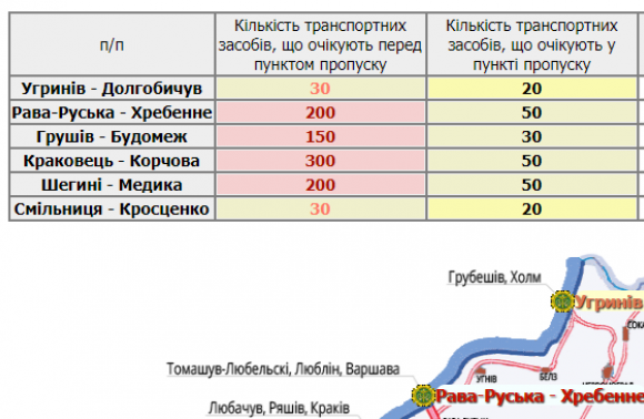300 водіїв очікують перед пунктом пропуску в Краковці, по 200 – у Рава-Руській і Шегинях, а 150 – у Грушеві.