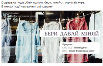 Фото: зі сторінки акції обміну одягом і речами «Бери-Давай-Міняй» в інтернет-мережі «Facebook»
