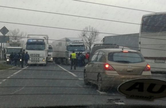 Тож закарпатські водії повністю перекрили дорогу машинами і вимагають, аби пікетувальники пропустили вантажівки. Оскільки далекобійники вийшли з автомобілів і ходять по пішохідному, не зізнаючись, що це їхні вантажівки, патрульні не можуть прибрати фури, які заблокували проїжджу частину.