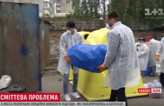 Тим часом громадські активісти теж взялись допомагати владі очистити місто. Кількадесят небайдужих львівян у халатах, респіраторах і рукавичках вийшли на переповнений майжанчик, там вони сортують сміття. Пляшки, папір, те, що піддається переробці пакують у сині пакети, а так зване мокре сміття, передусім, органіку – у чорні.
