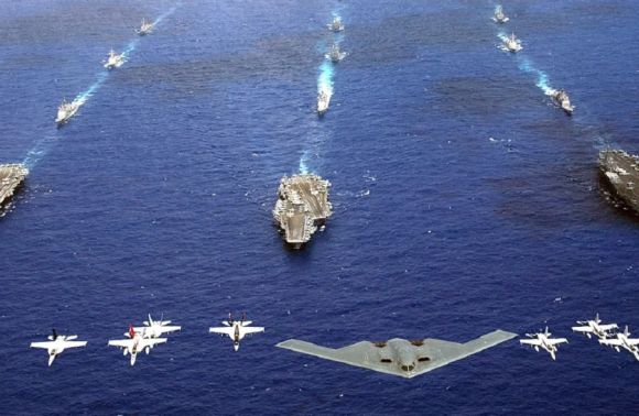 Літаки у супроводі чотирьох танкерів прямують на захід, у напрямку військово-морської бази Гуам у Тихому океані.