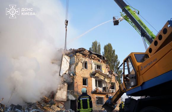 А під руїнами будинків у Києві шукають людей. Залучені верхолази, кінологи, психологи, інженерна, пожежно-рятувальна техніка.