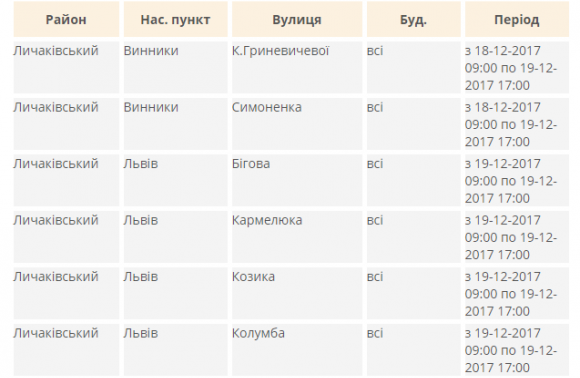 Зокрема, в Шевченківському районі Львова знеструмлені до 17:00 вулиця Симоненка й 3-й Заозерний провулок будинки №№13-43 на вулиці Заозерній, а у Винниках – вулиці Вузька й Гриневичевої. Через роботи в Сихівському районі можливі перебої з електропостачанням у мешканців будинків №185 та №187 на вулиці Пасічній і №16, №17, 17а, №19 та №22 на вулиці Пимоненка. Натомість пошкодження в електромережах частково знеструмило вчора о 22:15 житлові будинки на вулицях Грушевського, Залізничній та Ягідній у селищі Рудному в Залізничному районі Львова. Про це повідомили в прес-службі «Львівобленерго».