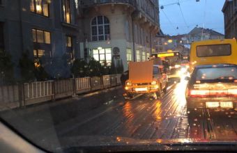 Поламаний автомобіль заблокував рух транспорту на початку вулиці Городоцької у Львові.