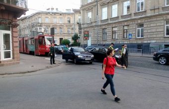 Близько 15 трамваїв вишикувалися на вулиці Івана Франка вбік центра міста.