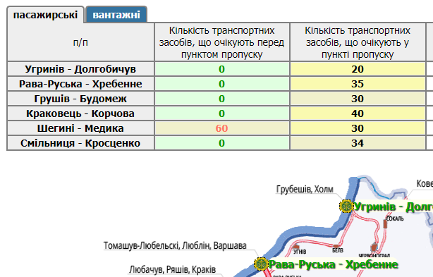 189 автомобілів скупчилися в прикордонних пунктах пропуску на Львівщині, а ще 60 – перед пунктом пропуску «Шегині».