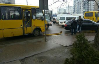 Бампер маршрутного таксі відлетів від нього на вулиці Богдана Хмельницького.