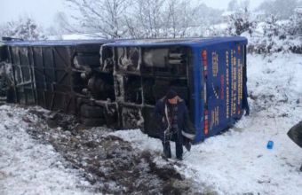 «На трасі Львів-Трускавець, повороті на Гірське (у Миколаївському районі Львівської області. – «ЩЛ»), перекинувся автобус з людьми, в автобусі було близько 30 людей – «Галицький Хор». Одну старшу жіночку забрала швидка у важкому стані, також була в автобусі вагітна, але свідки кажуть, що з нею все гаразд, ще в декількох пасажирів забої і є переломи», – повідомили сьогодні, 3 грудня, на сторінці громадської організації «Варта 1» в інтернет-мережі «Facebook», де також опублікували фото з місця ДТП.