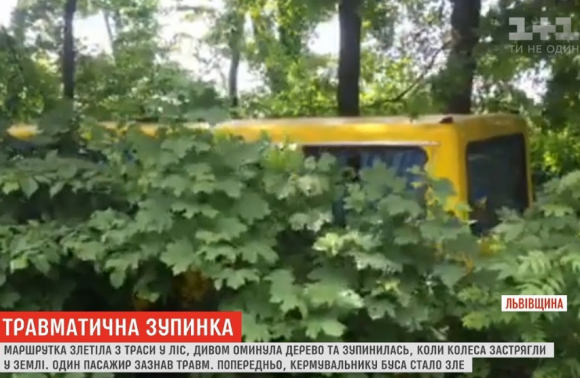 Про це повідомила в середу, 5 червня, «Телевізійна служба новин» каналу «1+1», де також розповіли: «Маршрутка дивом оминула дерево та зупинилась, бо колеса застрягли у вологій землі. Один пасажир зазнав травм. Люди в паніці вибігли з салону та побачили, що водій ледь тримається на ногах. За попередньою інформацією, йому стало зле».