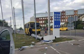 У четвер, 10 червня, у Львові маршрутка знесла знак та врізалась у автозаправку.