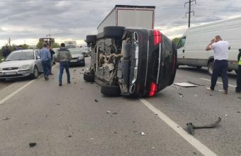 Аварія сталася близько на 18:41. Внаслідок ДТП автомобіль “Мерседес” перекинувся посеред дороги.