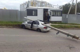 Легковий автомобіль «Daewoo Lanos» не розминувся в п’ятницю, 26 жовтня, о 13:00 з електроопорою біля будівельного майданчику на вулиці Гната Хоткевича у Львові.