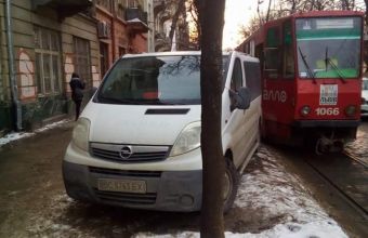 Пасажири трамвая №1 змушені були звільняти колію на вулиці Бандери від легковика, який блокував рух електротранспорту.