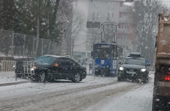 У четвер, 14 грудня, на розі вулиць Мельника й Генерала Чупринки у Львові легковий автомобіль «занесло» в дорожній знак, при цьому він також перекрив рух трамваю. Про це депутат Львівської міської ради й голова виконкому громадської організації «Варта 1» Ігор Зінкевич повідомив сьогодні, 14 грудня на своїй сторінці в інтернет-мережі «Facebook», де він також опублікував фото з місця події.