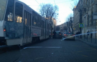 Автомобіль зупинив у Львові трамваї №8