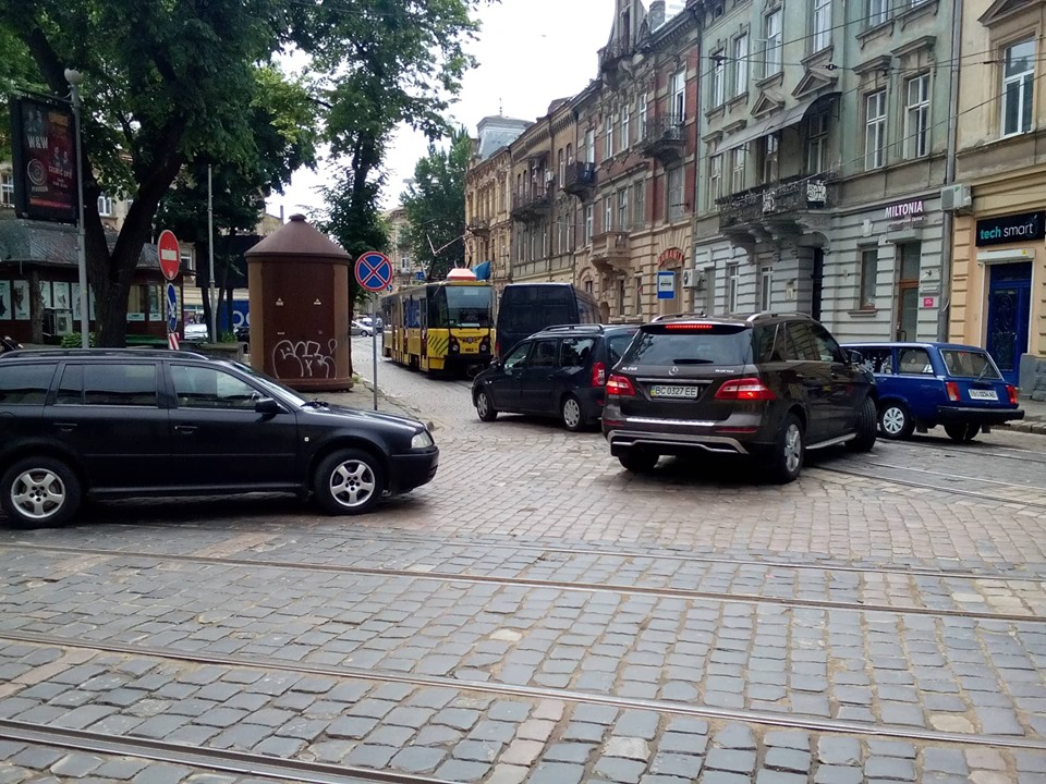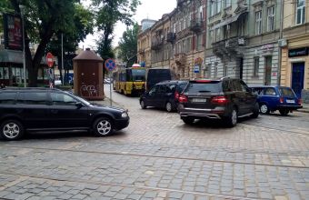У п’ятницю, 31 травня, автомобілі заблокували на площі Івана Франка у Львові рух трамваїв.