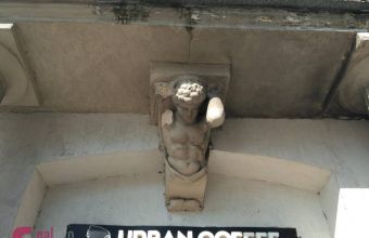 У Львові біля вуличної кав‘ярні жінка мало не стала жертвою бетонної конструкції, яка обвалилася з консолі у вигляді скульптури атланта.