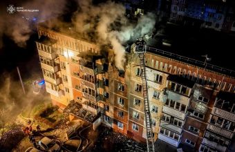 Ворожий БПЛА потрапив у верхній поверх багатоповерхівки в одному з мікрорайонів міста. Є загиблі та постраждалі. Рятувальники гасять пожежу.
