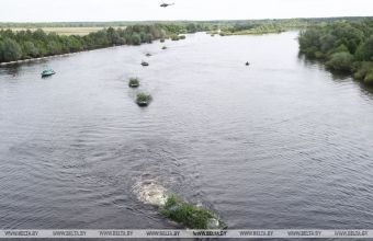 Тим часом на Гомельщині посилений парашутно-десантний батальйон 103-ї Вітебської окремої гвардійської повітряно-десантної бригади сил спеціальних операцій спільно з прикордонною службою відпрацювали епізод переправи щодо подолання водної перешкоди через річку Сож в умовах впливу "диверсійних сил" умовного супротивника, передає БЕЛТА.