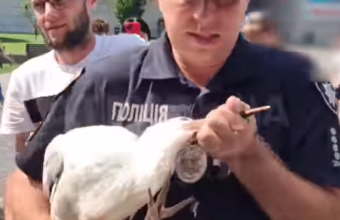"Оскільки була загроза для птаха, небайдужі звернулися до поліціянтів. Патрульні 2-го батальйону разом з громадянами зловили птаха і відвезли його на реабілітацію в Домівку врятованих тварин",- йдеться в повідомленні.