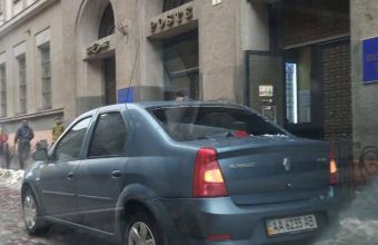 Брила снігу впала розбила скло й пошкодила дах автомобіля біля будівлі Головної пошти на вулиці Словацького у Львові.